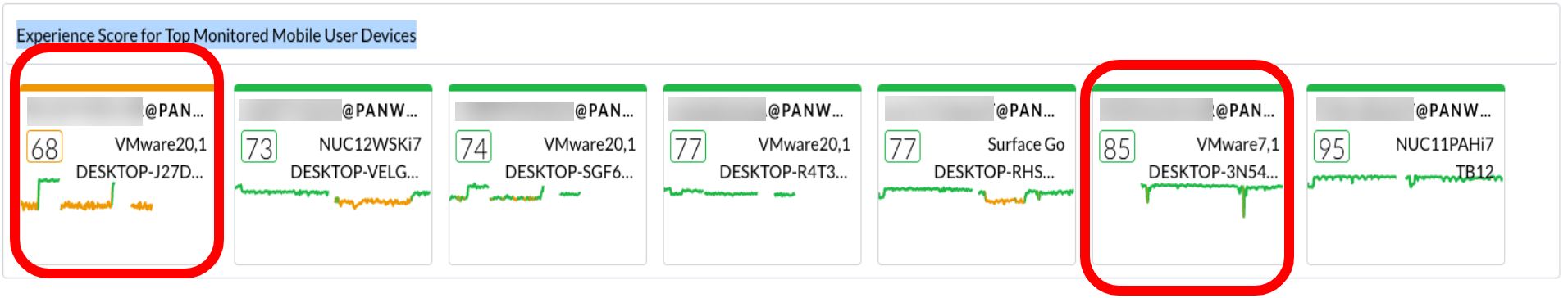 Get Experience Score for Top Monitored Mobile User Devices