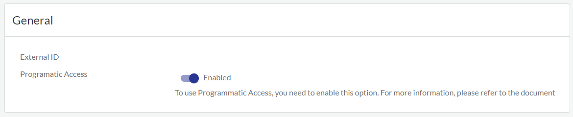 - Under General, click Programmatic Access slider.