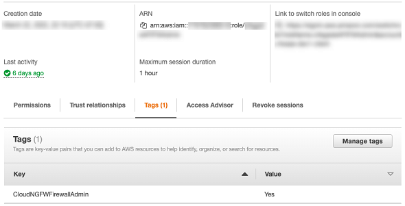 Add the following tags (consisting of a key and value) to the IAM role to provide permission policies as needed.
